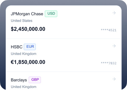 Gain real-time visibility across accounts, currencies, and entities from a single interface.